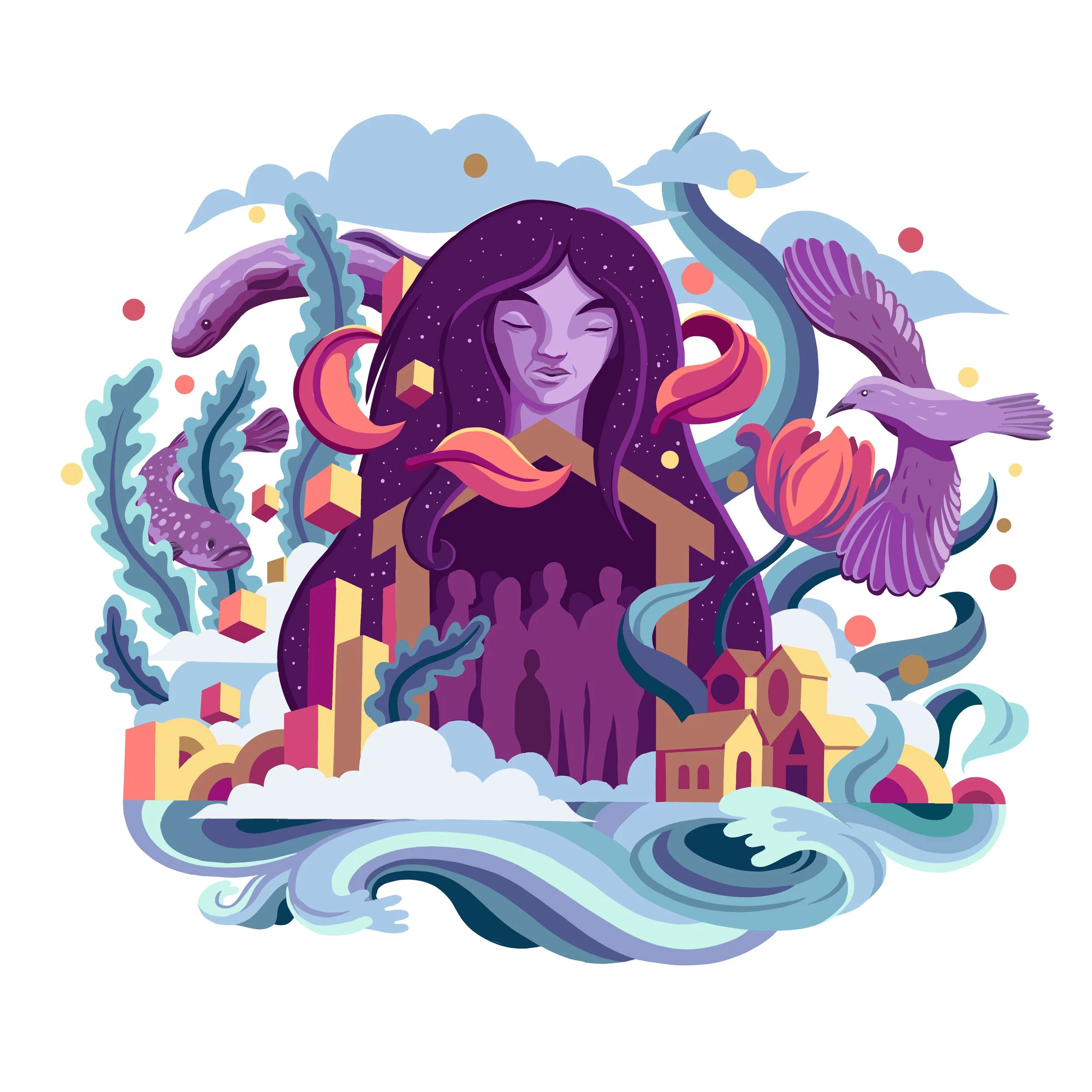 Inspired by the natural world and the interconnectedness of all things, I create visionary and uplifting imagery that invites people to pause and reflect. Every artwork I create is a story told through color, shape, and concept.